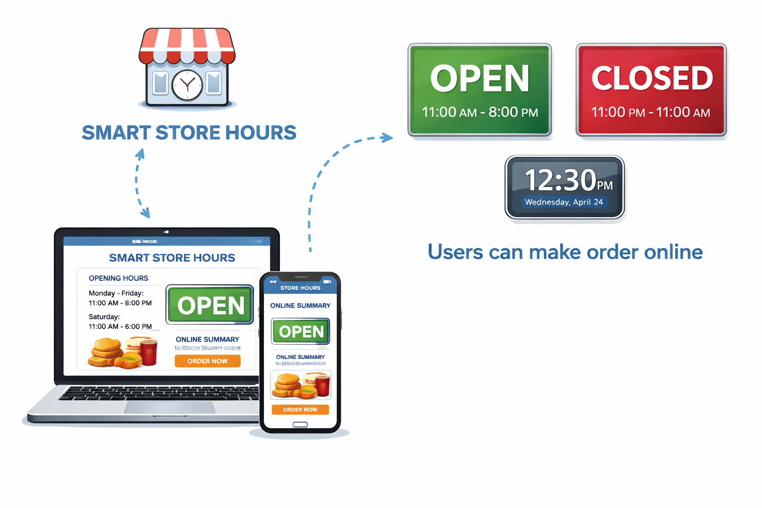 Protect your workflow. Automatically hide "Add to Cart" buttons when your physical store is closed. Display the exact next opening time dynamically to keep customers informed.