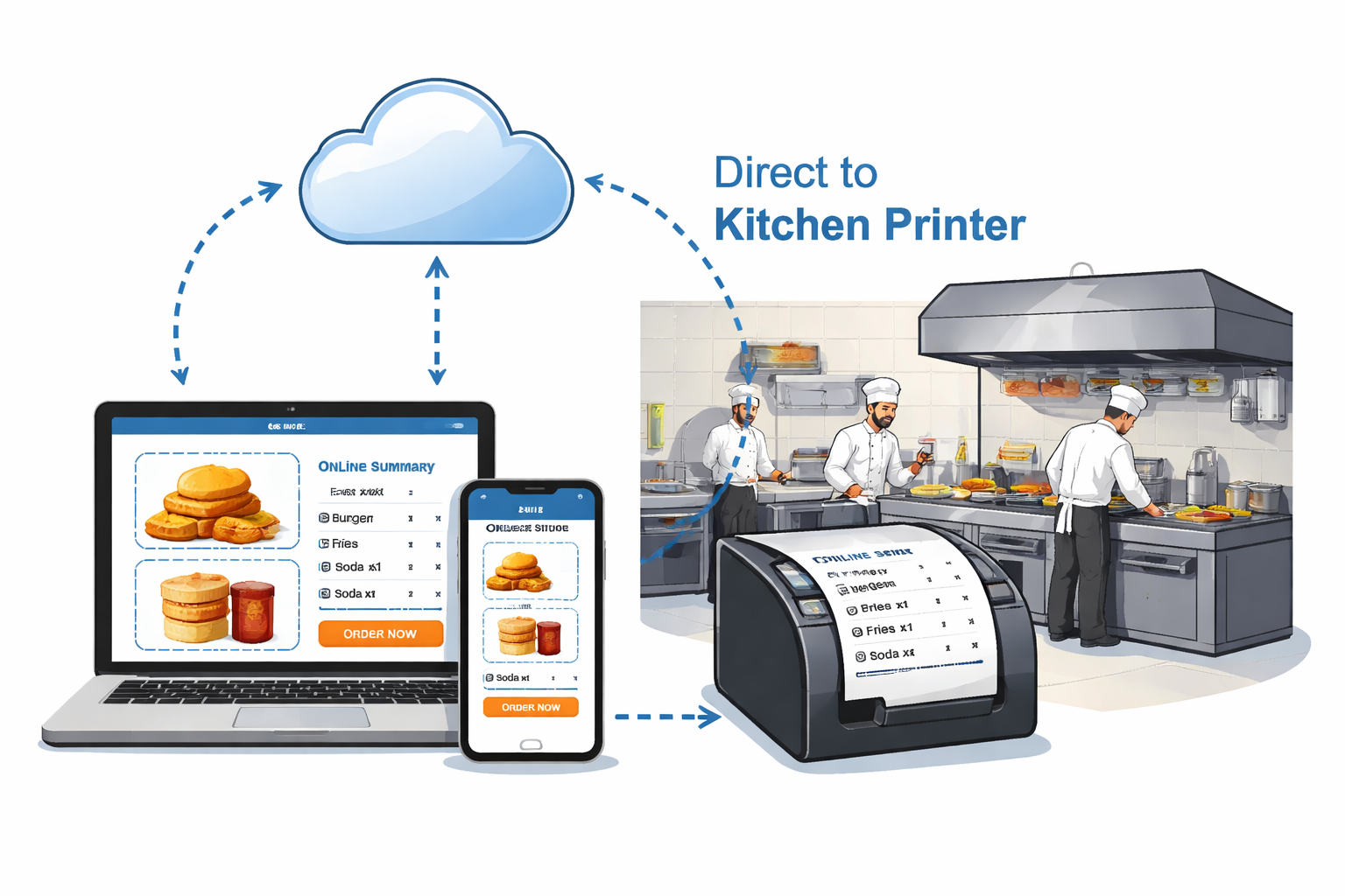 Designed for food and rapid retail ops. Instantly route new online orders to a local printer or kitchen printer to manage online food orders more easily.